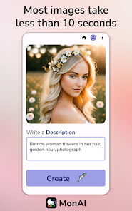 Feel like Monet with MonAI the AI art creator powered by Stable Diffusion Scroll through the Home feed for ideas and inspiration See something you like Tap the edit button to customize it or see it with your favorite subject MonAI is similar to Midjourney but free