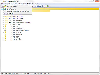 사용자가 선택한 폴더와 하위 폴더들의 크기를 보여주어 하드 디스크에서 낭비되는 공간을 확인할 수 있는 유용한 프로그램입니다.