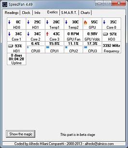 하드웨어의 몇 가지 모니터링 기능과 PC 내부의 온도에 따라 쿨링 팬 스피드를 조정할 수 있으며 SMART 속성을 사용하여 하드 디스크의 상태를 확인할 수 있는 도구입니다.