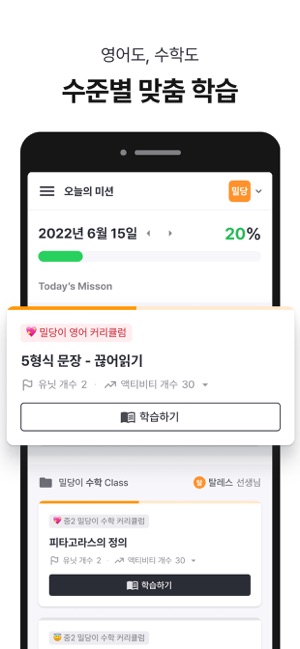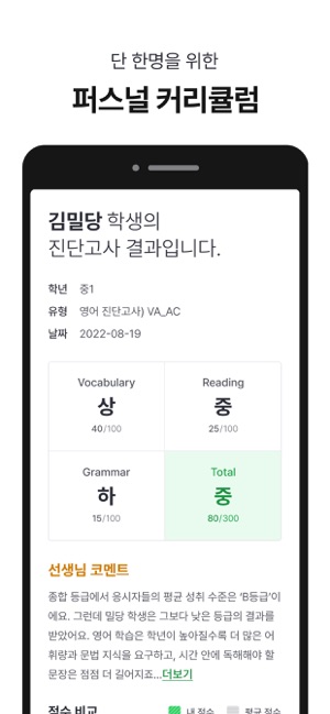 오직 밀당PT에서만 가능한, 일반 학원에서는 경험하지 못했던 대치동 수준의 1:1 온택트 PT 프로그램!1. 20:1의 경쟁률을 뚫은 대치동급 1:1 전담 온택트 선생님 배정2. 단순한 레벨테스트가 아닌 AI 기술에 기반한 초정밀 진단고사 진행3. 획일적인 커리큘럼 NO! 오직 단 1명만을 위한 맞춤 커리큘럼 셋팅4. 맞춤 수업 및 관리 진행일반 학원은 따라올 수 없는 완벽한 내신/수능 대비 맞춤형 커리큘럼을 경험해보세요.[내신 완벽대비]1. 전국 학교별 교과서/부교재2. 1지문당 40여개의 유형별 변형문제3. 전국 교과서별 맞춤강의 제공4. 시험기간 특별학습 및 스케쥴 관리[수능 완벽대비]1. 개인별 1:1 맞춤 커리큘럼2. 수준별 400여개의 맞춤 강의 제공3. 약점 분석 & 보완학습'대치동에 안 살아도' 전국의 학생들이 대치동급 1:1 온택트 PT를 받고 있습니다.