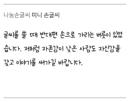 폰트소개 여러분과 AI가 함께 만든 새로운 나눔손글씨 글꼴을 소개합니다뜻깊은 소개말이 담긴 총 109종의 손글씨 글꼴한글한글 아름답게 캠페인과 네이버 클로바가 함께합니다사용범위나눔손글씨 글꼴은 기업 및 단체 또는 개인 누구나 무료로 사용할 수 있습니다 다만 나눔손글씨 글꼴을 유상으로 제공 판매 배포하는 것은 금지됩니다한글날 손글씨 공모전 참여 시 입력한 글꼴명 및 글꼴 소개말은 임의로 변경되었을 수 있습니다lt폰트배포의 건gt소프트쉐어에서는 재배포가 허용된 무료 폰트에 한정하여 배포하고 있습니다본 페이지에서 제공하는 폰트 사용 범위 저작권 정보는 최신 정보가 아닐 수 있습니다폰트와 관련된 자세한 사항 및 상업적 사용에 대한 상세 정보는 개발자에 직접 문의하시길 바랍니다자동설치형 폰트EXE는 다운로드 후 해당 파일을 실행하시면 자동 설치됩니다Windows XP는 수동설치 폰트는 다운로드 후 시작버튼 gt 제어판 gt 모양 및 개인설정 gt 글꼴에 다운로드 받은 폰트파일을 넣습니다Windows 7에서는 폰트파일을 더블클릭 또는 우클릭 후 설치 메뉴를 선택합니다TTF True Type Font는 Window용 OTF Open Type Font는 Mac용 폰트 입니다