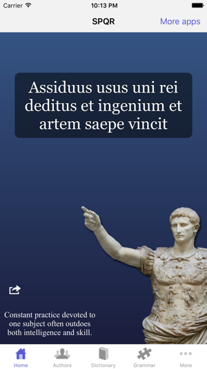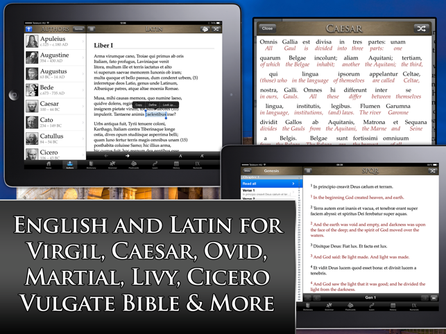 SPQR is the ultimate learning tool for Latin students who want to immerse themselves in the language, presenting the most comprehensive Latin dictionary on the App Store, dozens of Latin texts with English translations, a grammar tester, flashcards, quiz, numeral converter, quotes of ancient wisdom, language learning tools and more.*** TEACHERS: You can save 50% off the price of SPQR by using Apple's App Store Volume Purchase Program for education - visit http://www.romansgohome.com/education for more information ***Here are just some of the features:- Full, fast and searchable copy of the Lewis & Short Latin lexicon - it searches as you type, showing either short definitions or full definitions along with citations.- Parse any Latin word to English, regardless of conjugation - includes full breakdown of the word's form.- Full copies of classic texts in their original Latin, grouped either by author or genre, including: the Gallic War and Civil War by Julius Caesar, Res Ges