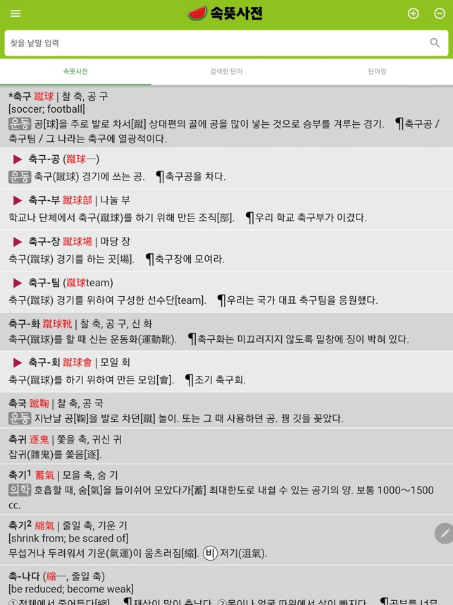 ◎ 우리말은 고유어, 외래어, 한자어로 구성되어 있습니다. 우리말 어휘의 속뜻을 알면 이해하는 재미가 솔솔 생기고, 어휘력이 쑥쑥 늘어 모든 과목 공부를 잘 하게 됩니다. '수박 겉 핥기'가 아니라 ' 수박 속 먹기'가 되기 때문입니다. 예를 들어 봅시다. "사암과 역암 중 어느 것이 클까요?" 대단히 어려운 문제인것 같지만, 사암의 사는 '모래 사'(砂), 역암의 역은 '자갈 역'(礰)이란 속뜻을 알면 참으로 쉬운 문제가 됩니다. 이렇게 낱낱 글자의 속뜻을 힌트로 삼아 쉽고 재미있게 공부할 수 있는 새로운 길을 터놓은 것이 바로 속뜻사전앱입니다. 대학 입학시험, 각종고시, 취업시험을 대비할 때 한자어의 속뜻을 몰라 무턱대고 암기하느라 생고생을 하는 학생들을 도와주기 위해서 이 앱을 제작하였습니다. 이를테면 '신진대사', '만유인력', '해식애', '파식동', '접안', '대물' 같이 매우 어려운 낱말들이 우리 속뜻사전앱에서는 엄청나게 쉬운 낱말로 바뀝니다. 속뜻사전 앱을 늘 옆에 켜두고 바로바로 검색해보면 어휘력이 쑥쑥 오르고 이해를 바탕으로 기억도 저절로 잘 됩니다. 무작정 암기하느라 고생할 필요가 전혀 없습니다. 속뜻사전앱이 삼생 (입시생, 취준생, 공시생) 여러분의 합격과 성공을 도와드릴 것입니다. ● 속뜻사전앱은 지