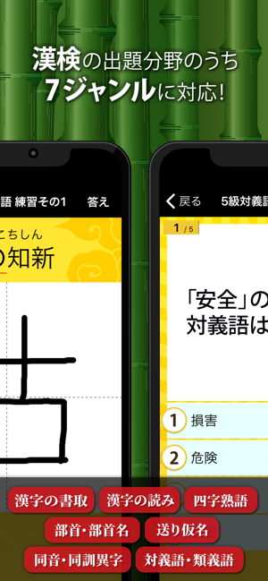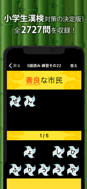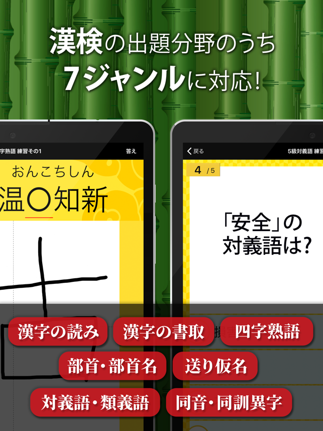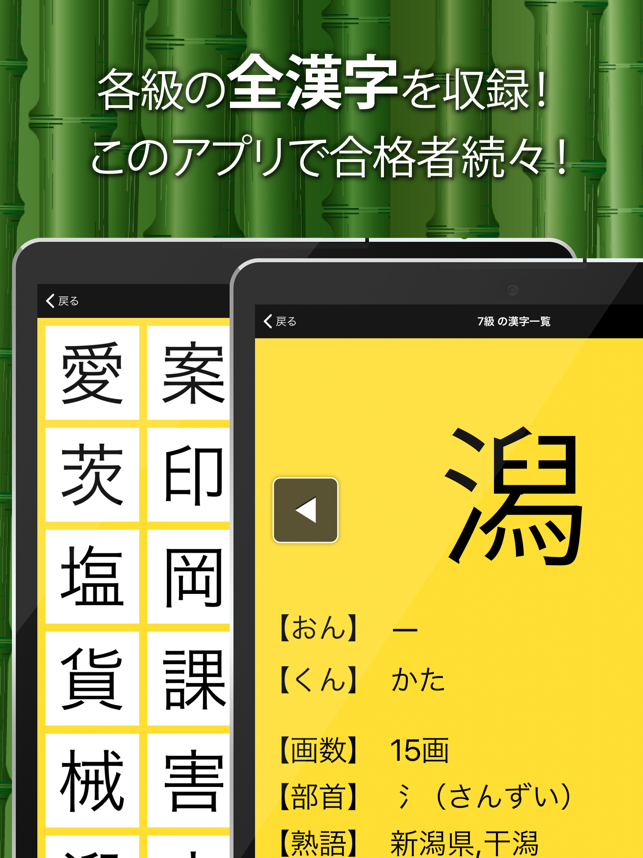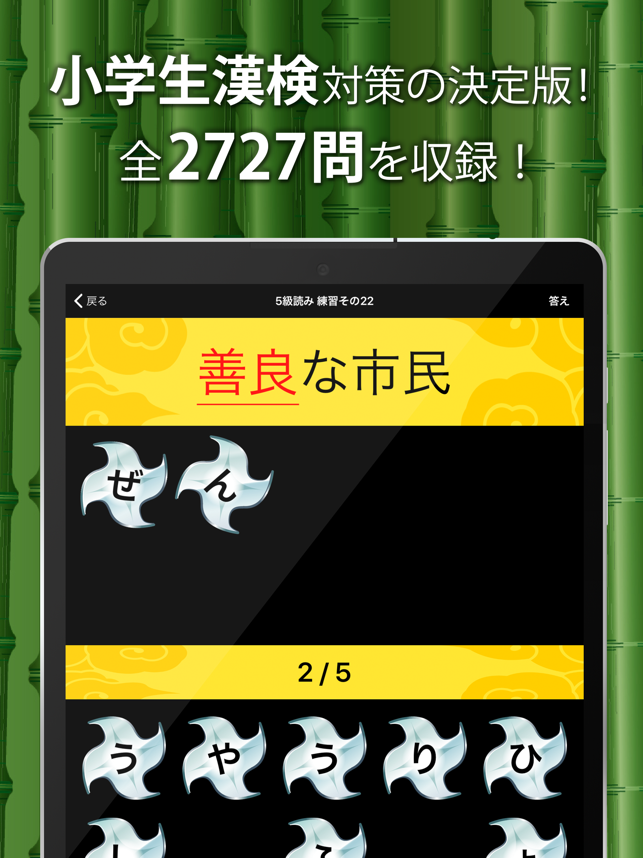 たくさんの応援レビューありがとうございます!とても嬉しいです!・publisher変更に対応しました漢検5級から10級まで全7分野・2727問題を収録。これからも内容充実・人気の本アプリ「漢字検定・漢検漢字トレーニング(小学生版)」をご利用ください!