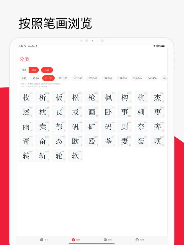 1. 提升图片的放缩与拖拽手势的使用的体验。2. 分类下的文字列表和文字的图片列表提升加载性能(iOS 14+)。3. 文字的图片列表页面支持左右滑动来切换到同分类的上一个或下一个文字(iOS 14+)。