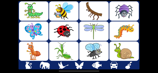 49 HD video clips of bugs & insectsGreat 48 videos to entertain and educate your child! When choosing one of the insects (butterflies, ants, millipedes, etc.), your child will watch 10-20 seconds video clips. For example - a bee collecting nectar from a flower, a spider weaving its web and even a caterpillar turns a butterfly. Each insect rotates through 4 separate videos with each tap from your child. Perfect and simple! FEATURES: * Voice over in 19 languages. (In the device "Settings" -> "VideoTouch")* 49 video clips of various insects.* 4 rotating videos for each insect.* Works together with the other "Video Touch" apps.-------------Note: In "Video Touch" the categories are actually different apps, but you can switch between them using the toolbar.At first when switching apps, there will be popup messages, asking if you would like to jump into another app.We suggest showing the children which is the correct button in order to proceed, a