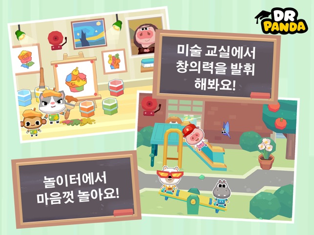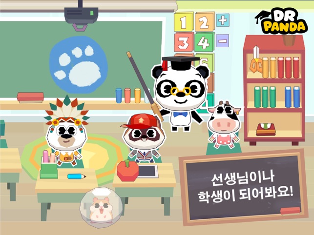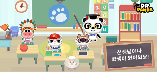 수업 준비가 다 되었나요?나만의 이야기를 만들어요!Dr. Panda 학교에서 상상의 나래를 펼쳐보세요! 학교, 학생, 그리고 발견하는 물건들을 탐험하고 역할 놀이를 해 자신만의 이야기를 만들어 들려주세요!되고 싶은 사람이 되어봐요!선생님, 학생, 요리사, 아니면 청소부가 되어 나만의 이야기를 들려주세요! 옷, 모자, 안경 등을 사용해 동물 캐릭터를 내 마음대로 꾸며 하고 싶은 역할을 해봐요!학교를 탐험해요!Dr. Panda 학교의 모든 방을 둘러봐요! 미술 교실에서 점토 조각품을 만들고, 놀이터에서 나만의 작물을 재배하고, 햄스터 햄보를 돌보거나 교실에서 수학을 가르쳐 보세요 - 놀 수 있는 방법이 아주 많아요!주요 특징- 창의적인 역할 놀이를 통해 학교 주변 탐색- 19마리의 어른 및 새끼 동물 - 학생이나 선생님, 또는 부모님 역할을 할 수 있어요!- 발견해야할 6군데의 장소: 복도, 교실, 보건실, 미술 교실, 학교 운동장과 식당!- 햄스터 햄보에게 먹이를 주는 것을 잊지 마세요!- 찾아야 할 수 많은 비밀 물건들!- 설정된 목표 또는 목적 없음. 절대적인 개방형 놀이를 통해 마음껏 탐험하기!- 어린이들에게 안전해요! 타사 광고 또는 인앱 구매 없음.개인정보 보호정책 아이들의 게임 개발자로서 우리는 현대 디지털 세상의 개인정보가 얼마나 중요한지 잘 알고 있습니다. 저희 개인정보 보호정책을 www.drpanda.com/privacy 에서 확인 하실 수 있습니다. Dr. Panda 소개닥터팬더는(Dr. Panda) 아이들을 위한 게임을 개발하는 회사입니다. 저희는 아이들이 세상에 관해 배울 수 있는 교육적인 가치가 있는 게임을 개발합니다. 저희가 어떻게 어린이들을 위한 게임을 디자인 하는지 궁금하시면 주저 말고 연락하세요. support@drpanda.com으로 이메일을 보내시거나 페이스북 www.facebook.com/drpandagames 또는 트위터 www.twitter.com/drpandagames를 방문하시면 됩니다.