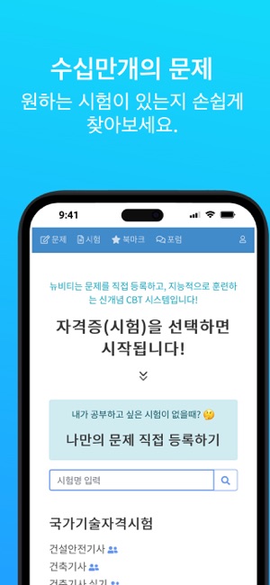 뉴비티는 기존 "기출문제 문제은행"이라는 오리지널 앱의 새로운 브랜드명입니다. 아이폰 CBT의 원조격으로, 많은 선배들의 자격증 합격 수기 등을 통해 검증된 서비입니다.본 서비스는 회원가입 및 로그인 없이 사용 가능한 서비스입니다. 여러 디바이스를 오가며 공부하시는 경우에는 선택적으로 로그인을 하실 수도 있으며, 회원가입 시 닉네임과 비밀번호만 입력하며 어떤 개인정보도 수집하지 않습니다.국가기술자격시험건설안전기사 건축기사 건축기사 실기 대기환경기사미용사(네일) 미용사(일반) 미용사(피부) 사무자동화산업기사 산림기사 산업안전기사산업안전기사 실기 산업안전산업기사 산업위생관리기사 소방설비기사(기계) 소방설비기사(전기)웹디자인기능사위험물산업기사 인간공학기사 인간공학기사 실기 전기공사기사 전기기사 정보관리기술사 정보보안기사 정보보안기사 실기 정보처리기사정보처리기사 실기 정보처리기사(구)제과기능사 제빵기능사 조리기능사 조주기능사 지게차운전기능사 천장크레인운전기능사 컬러리스트기사 컴퓨터시스템응용기술사 공무원 전산직국가공무원 7급 소프트웨어공학국가공무원 7급 정보보호론 국가공무원 9급 네트워크 보안국가공무원 9급 영어 국가공무원 9급 응급처치학개론 국가공무원 9급 정보보호론 국가공무원 9급 정보시스템 보안국가공무원 9급 컴퓨터일반서울시공무원 9급 전산직지방공무원 9급 영어 지방공무원 9급 정보보호론 기타 IT·전산 시험ISMS-P 인증심사원 PC정비사 2급 개인정보관리사 네트워크관리사2급데이터분석 준전문가 리눅스마스터 1급리눅스마스터 1급 실기리눅스마스터 2급 워드프로세서 정보시스템감리사컴퓨터활용능력 1급컴퓨터활용능력 2급영어·언어 시험GRE Quantitative GRE Verbal GRE 동의어 GRE 수학 용어 TOEFL 동의어 TOEFL 라이팅 TOEFL 스피킹 무역영어 1급어린 왕자 영어 가사 해석 영어 독해 영작 연습 기타 시험감정평가사공인중개사 1차 공인중개사 2차 사회복지사1급운전면허 필기전산세무 1급전산세무 2급전산회계 1급전산회계 2급한국