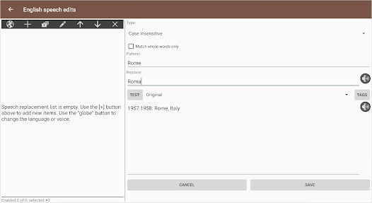 Enhance speech with TTS correction including optional use of Regular Expressions RegEx