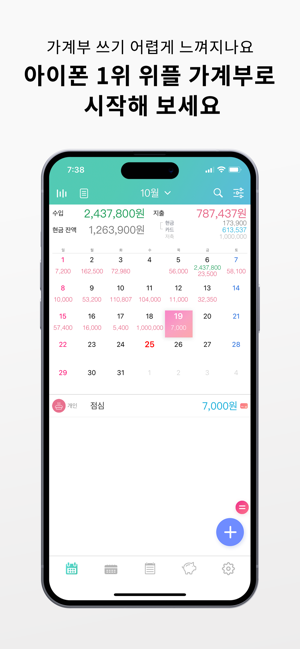 아이폰에서 가장 많이 사용하는 가계부!압도적인 리뷰! 지금 사용해 보세요.가계부를 잘 사용하는 사람이 아니라사용하지 않는 사람을 분석했습니다.현실 세계의 모든 것을 완벽히 관리하면 좋겠지만아직은 시스템이 자동으로 하기 어렵습니다.그래서 가계부 작성이 복잡하고 귀찮다고 생각합니다.그런 사용자들을 위하여 만들었습니다.더 이상은 복잡한 기능에 어려워하지 마세요.위플가계부로 차근차근 가계부 작성을 시작해보세요.여러분에게 작은 변화가 있기를 바랍니다.[주요기능]* 초간편 내역 입력* 월간 내역보기* 주간 내역보기* 일간 내역보기* 카테고리별 지출 통계* 예산관리* 자산관리* 카드별 지출 통계* 업그레이드를 하시면 광고가 사라집니다.[결제 및 환불 안내]애플은 개발자에게 결제 정보를 제공하지 않아 개발자는 구매 내역을 알 수가 없습니다. 아이폰 설정 -> Apple ID -> 미디어 및 구입 항목을 확인해 주세요.환불은 애플을 통해 하실 수 있으며 신청 후 며칠 이내에 반영됩니다. https://support.apple.com/ko-kr/HT204084 [서비스 문의]오류를 발견하시거나 궁금한 사항이 있으시면 withweple@gmail.com으로 문의해 주세요.