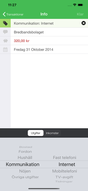 Selected Best of 2011 by Apple (Itunes rewind). MacWorld Sweden에 의해 오늘의 앱으로 선정! 스웨덴, 독일, 오스트리아, 이탈리아, 스페인, 러시아, 멕시코, 칠레, 베네수엘라, 포르투갈 및 브라질에서 금융 카테고리의 최우수 앱. 내 가계부는 스웨덴에서 개발된 간편한 개인 재무 관리용 제품입니다. 수입과 지출을 기록하면 지출 금액, 지출 항목, 잔액을 확인할 수 있습니다. 어디서나 간편하게 관리할 수 있습니다. 전화기를 꺼내 거래 내역을 한꺼번에 기록하십시오. 이 앱의 특장점: 1. 지출 내역과 잔액을 보여 주는 간편한 다이어그램으로 주간, 월간 및 연간 수입과 지출 내역을 볼 수 있습니다. 2. 수입과 지출을 업데이트할 때마다 각 항목이 당일 합계가 포함된 목록으로 팝업됩니다. 또한 정기적 거래를 입력할 수 있어서 사용자 편의성이 더욱 향상되었습니다. 3. 유연한 카테고리 구조를 채택하여 원하는 방법으로 카테고리 및 하위 카테고리를 추가할 수 있습니다. 4. 내보내기 기능을 이용하여 지출 내역을 Excel, CSV 또는 HTML 형식으로 내보내 백업하거나 더 자세히 분석할 수 있습니다. 사용법이 쉬운 제품이며 사용자 요구사항을 반영하면서 계속 개선해 나갈 것입니다. 궁금한 사항이나 의견이 있는 경우 또는 제품 개발에 참여하거나 기여하시려는 경우 http://www.block21.com을 방문하시거나 support@block21.com으로 이메일을 보내 주십시오..