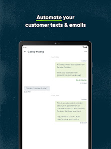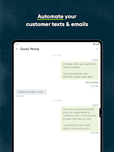 Automate communications Send visit reminders follow up on quotes and invoices and gather customer feedback with automated messages