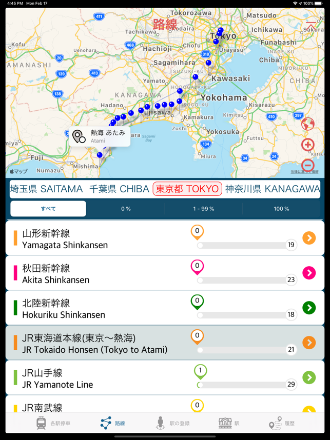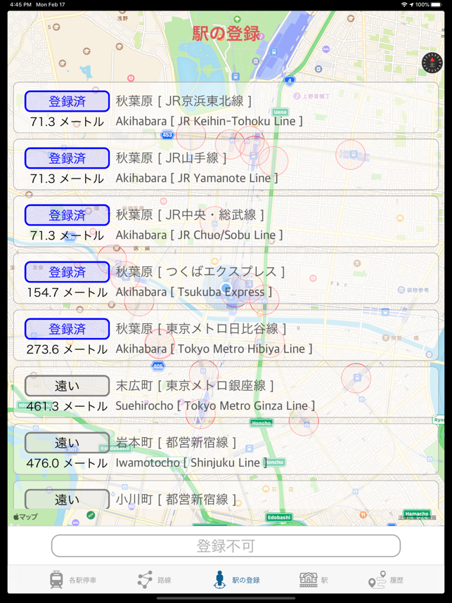 일본의 철도역을 방문하고 기록하는 응용 프로그램.역의 100 이메일 이내에 접근 할 때 기록 할 수 있습니다.일본의 JR, 사철, 지하철, 전차, 모노레일 등 8,907 역 (597 노선)을 수용.지하철 역과 같이 GPS를 수신 할 수없는 역에서는 현재 위치가 올바르게 표시되지 않을 수 있습니다.장시간 GPS를 사용할 배터리를 크게 소모합니다.