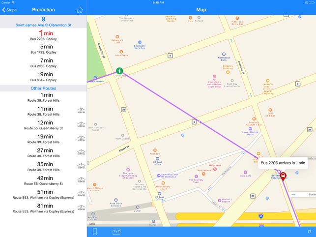 “Where’s my MBTA Bus?” is an app for Massachusetts transit riders who want to know exactly where their bus is and when it will arrive. It can help riders decide if they need to rush or can restfully finish their morning coffee. Features:- Universal app; supports iPad, iPhone, and iPod Touch- Real-time arrival predictions for ALL MBTA bus stops- Real-time bus locations for ALL MBTA routes- View official MBTA Alerts- Guided navigation to help riders find their stops - View entire route path with all stops on the map- Save stops as Favorites to ensure quick access at any time- Quick access to predictions for the last viewed stop - Automatic refreshing of predictions and bus locationsThis app relies on MBTA partnership with NextBus inc, to provide real-time bus arrival predictions. Data is provided by NextBus using MBTA raw data. Using their special formula, NextBus is able to provide not only bus locations, but arrival predictions for every single bus stop. The app provides a pre-filled