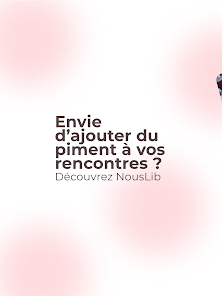 N39attendez plus laissezvous guider par vos envies et dcouvrez une nouvelle faon de faire des rencontres Que vous cherchiez votre prochain crush un flirt un date sans lendemain une aventure sensuelle ou des moments de complicit et de dcouverte NousLib vous accompagne dans votre recherche