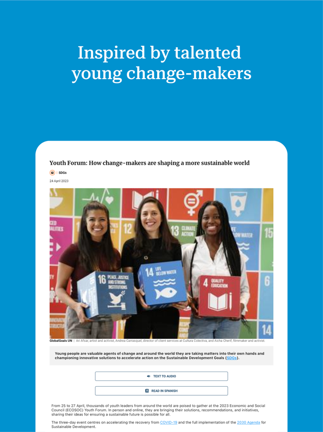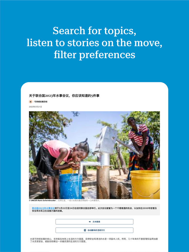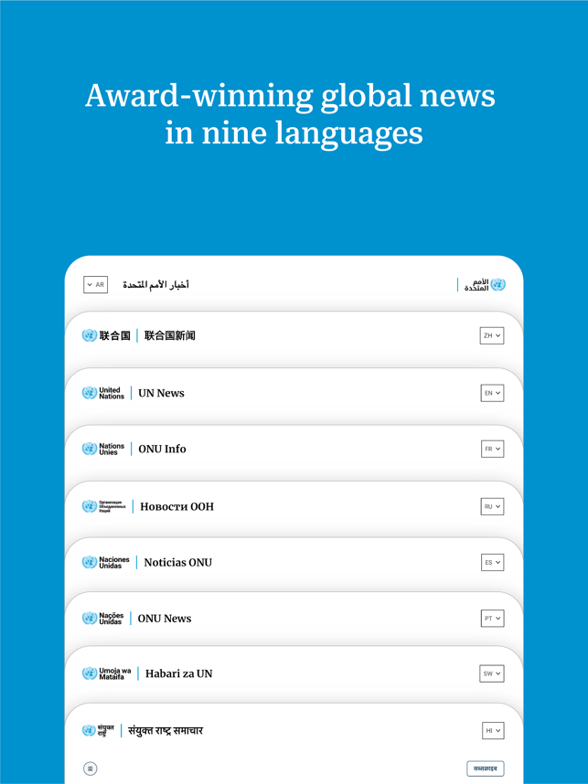 This is your destination for daily multimedia updates on UN’s breaking news and events through text, photos, infographics, audio and video in 9 languages. Use this fully multilingual app in Arabic, Chinese, English, French, Russian, Spanish, Kiswahili, Portuguese and Hindi. The app’s updated features include: • Global updates on peace and security, sustainable development, human rights, climate change and other UN priorities• News, Videos and Audio Programmes, including Podcasts• In-depth stories, photo features, field reports and interviews with top UN officials and envoys• Live broadcasts of the Security Council and General Assembly meetings• Customizable newsfeed in My News• Bookmarks• Easy search• Text to audio function• Social media feeds on multiple platforms • Access to the UN.org website • Automatic translation and more… UN News app is your gateway to the world of verified information from the United Nations.