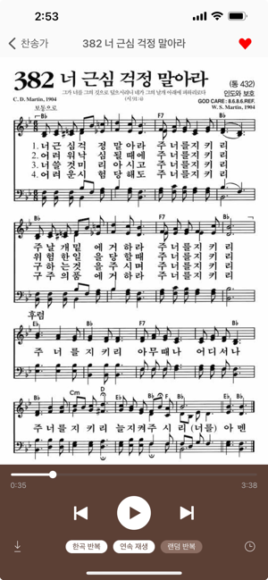 새찬송가 피아노 반주 음원 구독 서비스가 추가되었습니다.한국찬송가공회 공식 채택 피아노 반주 음원.국내 최정상급 피아니스트 천예나가 직접 연주한 찬송가 음원을 만나보세요.커피 한 잔 가격으로 찬송가 645장 전집을 한 달 내내 무제한 사용할 수 있습니다."찬송가에 이렇게 좋은 곡이 많았어요?" 찬송가 피아노 반주 음원을 먼저 들어본 성도님의 고백입니다. 645장의 찬송가에는 오직 하나님만 높여드리는 찬양과 우리의 신앙의 고백이 맑은 가락과 함께 어우러져있습니다.내 영혼의 그윽히 깊은 데서 맑은 가락이 울려 나오듯, 찬송가 피아노 반주는 여러분의 마음의 고백을, 하나님을 찬양하는 진심어린 마음을 새롭게 해줄 것입니다.ㅇ 하루 종일 틀어놓아도 좋습니다.ㅇ 개인 기도시간에 묵상용으로 들어도 좋습니다.ㅇ 소모임, 그룹모임, 셀모임, 신우회에서도 좋습니다.ㅇ 예배용으로 사용하면 더할나위없이 좋습니다.찬송가 피아노 반주에 맞추어 여러분 마음에서 우러나오는 찬양과 고백을 하나님께 드리기를 소망합니다.찬양은 우리가 하나님께 드리는 예물이며,하나님께서 우리에게 허락하신 특권입니다."비파야 수금아 깰지어다. 내가 새벽을 깨우리로다."본 찬송가 반주 음원은 선명하고 정확한 음질 구현을 위해 특별히 Roland HP-601 디지털 피아노로 녹음되었음을 밝혀둡니다.1절은 4부에 맞춰 반주하였습니다. 한절씩 진행될수록 점진적으로 아름다움을 더하였습니다.스마트성경과 찬송에 수록된 “21세기 새찬송가”의 저작권은 재단법인 한국찬송가공회에 있으며, 재단법인 한국찬송가공회의 허락을 받고 반주 음원을 제작하였습니다(승인번호 : NO. 38-038).이에 따라 악보와 음원을 유료 콘텐츠로 제공합니다.개역개정, 새번역은 대한성서공회와 공식적으로 저작권이용 협의를 맺었습니다.(제작자가 ‘개역개정’ 저작권료를 전액 지불하여 성도님들께는 무료로 제공합니다.)동시에 4개의 역본을 한 번의 클릭으로 가장 간편하게 볼 수 있는 성경가사 음성 검색까지 지원하는 차원이 다른