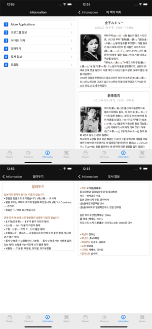 ◑ 추천 App: YBM 올인올 영한영 플러스 사전 - EKE DIC ◐▶ 영한영 사전류 앱 최초! Apple의 최신 iOS 15 완벽 지원("라이트 모드", "다크 모드" 지원)▶ App 사용 시 눈이 편안한 효과를 얻을 수 있으며, 단말기의 배터리 절약- 서적일본 초등학교 3~4학년 국어교과서에 실린 작품 중, 작품성에서 뛰어난 평가를 얻고 있는 ‘카네코 미스즈’와 ‘니이미 난키치’ 두 작가의 작품만을 모아 엮었습니다. 두 작가의 순진무구하고 따뜻한 시선이 독자들을 어린 동심의 세계로 이끌어 줄 것입니다.- 프로그램1. 수준별∙장르별 골라 읽는 재미 : 일본초등학교 국어 교과서선부터 일본 근 현대 문학사에 한 획을 그은 소설까지 내 수준에 맞는 작품, 내 입맛에 맞는 작품으로 일본어 독해력을 높일 수 있습니다.2. 사전 없이 즐긴다 : 사전이 필요 없는 자세한 어휘 풀이, 알쏭달쏭 문형은 예문과 함께 체크할 수 있어, 언제 어디서나 즐겁고 간편하게 읽을 수 있습니다.3. 독해는 물론 듣기 학습까지 : 네이티브의 정확한 발음으로 녹음된 생동감 넘치는 오디오로 듣기 능력도 향상시킬 수 있습니다.4. Check up을 통하여 문형 확인 학습과 문장 연습을 하며 실력을 다질 수 있습니다.개발•판매: 다올소프트