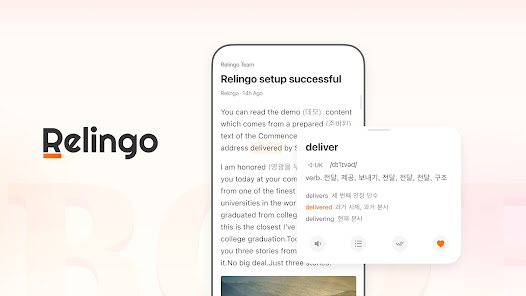 Relingo를 사용하면 관심 있는 콘텐츠를 탐색하면서 쉽게 단어를 익히고 빠르게 번역을 확인할 수 있어 언어 학습의 문턱을 낮출 수 있습니다