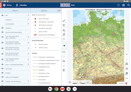 Alle Karten sind in Ebenen zerlegbar so dass jeder Benutzer sich seine eigene Karte zusammenstellen kann Hiermit wird der Diercke Weltatlas interaktiv Die Legende der Karten passt sich automatisch den gewhlten Ebenen an so wird auch hier nur angezeigt was tatschlich in der Karte zu sehen ist