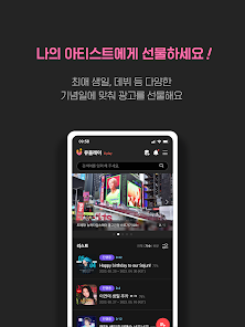 팬들이 직접 입력하고 등록하여 자신이 응원하는 아티스트의 생일 데뷔 캐스팅 등의 기념일에 광고/기부 선물을 할 수 있어요 친구들과 모금을 완료해서 최애에게 선물해 주세요