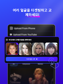 간단하고 직관적인 인터페이스 얼굴 스왑이 이렇게 쉬울 수 없습니다 몇 번의 터치 만으로 어느 동영상에서든지 당신이 주인공이 됩니다