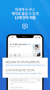 1 MUSIC 고음질로 음악을 재생할 수 있으며 백그라운드 플레이가 가능합니다 13개 언어로 가사와 발음 앨범 정보 등을 볼 수 있습니다