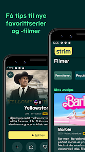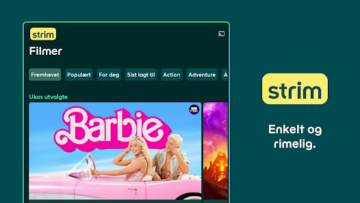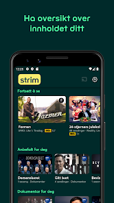 Strim kan lastes ned p iOS og Android Du kan se via mobil nettbrett og direkte i nettleseren F Strim rett p TVen din med Chromecast Samsung SmartTV Android TV eller Apple TV Du kan ha Strim p s mange enheter du nsker og se to strmmer samtidig
