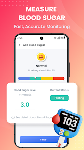 The blood glucose tracker app empowers you to track your heart rate Cover the camera lens with one of your fingertips Hold it until the measurement is over Check your heart beat levels slow normal fast