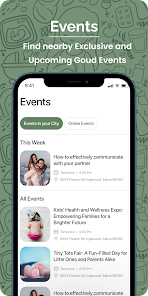 Events Get access to specialized inperson and online events organized by Goud to bring the community to life and engage with likeminded mothers in your area