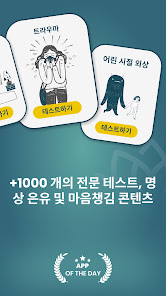 우리 앱에 포함된 77개의 정신 테스트를 통해 마음을 탐색하세요 성격과 심리학에서 라이프스타일과 기분에 이르기까지 우리의 테스트는 내면 세계에 대한 귀중한 통찰을 제공하며 개인 발전을 계속할 수 있게 해줍니다 트라우마 테스트 양극성 장애 테스트 우울증 테스트 ADHD 테스트 PTSD 테스트 및 기타 정신 건강 테스트를 포함한 구체적인 평가 테스트는 정신 건강을 보호하고 양육하는 포괄적인 치료를 제공합니다