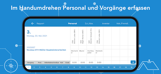 Der Tagesrapport ist analog der Papierform aufgebaut und kann somit von jedermann intuitiv bedient werden