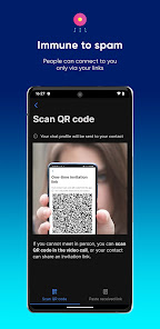 You can connect to anybody you know via link or scan QR code in the video call or in person and start sending messages instantly no emails phone numbers or passwords needed