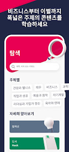 사용이 매우 간편합니다 Hack이라고 불리는 5분 분량의 요약은 이해하기 쉽고 빠르게 학습할 수 있으며 폭넓은 주제로 제공됩니다
