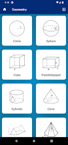 The Geometry Calculator app provides an easy platform to calculate important parameters of Geometric shapes such as volume perimeter area etc