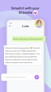 Luzia is an intelligent personal assistant designed to help in all facets of daily life from everyday tasks and work to studies and languages and even in daily conversation Luzia makes access to artificial intelligence easy direct and free for everyone Interacting with Luzia is as natural and simple as chatting with a friend using both voice and text Just download the app and start exploring all its possibilities