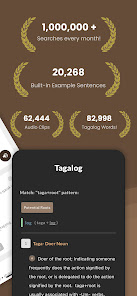For Intermediate and Advanced learners this app includes advanced features such as word frequency indicators an affix analysis program to suggest which affixes may be in use with any word you encounter and a large searchable corpus of Tagalog texts showing realworld word use