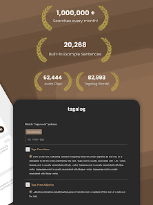 This TagalogEnglish dictionary is custom built with the Tagalog / Filipino language in mind including an advanced affix analysis engine to give better search results than other Tagalog dictionaries available online