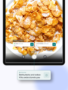 Automatic Food Tracking Just take a picture of your meal or describe it with your voice and Kilo will handle the rest