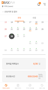 운동을 끝낸 후 로그인 시 30일간의 운동계획과 결과가 나타나며