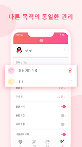 월경 알림 불임 알림 및 배란일 알림은 별도로 설정할 수 있습니다
