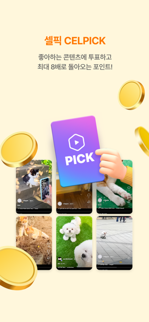 재미있는 숏폼 앱테크의 시작, 셀러비!내 취향대로 숏폼을 즐기면 포인트가 되어 돌아와요!지금 셀러비에서 다양한 숏폼 콘텐츠를 만나보세요.▶ 나만의 숏폼플레이리스트로 실시간 수익내가 만든 플레이리스트로 수익을 얻을 수 있어요.내가 올린 영상을 다른 사람이 사용해도 추가 수익을 얻어요.▶ 영상 보는 만큼 실시간으로 쌓이는 수익셀러비는 콘텐츠를 보는 만큼 수익이 발생하는 숏폼 리워드 플랫폼입니다.이제 셀러비에서 재밌는 영상을 즐기고 실시간으로 활동 포인트를 모아 보세요.▶ 매일 매일 최고의 콘텐츠에 PICK하면 배로 얻는 수익최고의 영상에 투표를 해보세요. 1등을 맞추면 쌓인 상금을 나눠가져요.▶ 간단한 미션 참여로 추가 포인트 획득출석체크부터 주간 미션, 그리고 특별 이벤트까지!셀러비를 즐기다 보면 레벨UP! 레벨이 올라가면 받을 수 있는 포인트도 늘어납니다.▶ 셀러비 크리에이터 셀러버!나만의 콘텐츠를 올려 셀러버가 되면, 무제한으로 크리에이터 수익을 얻을 수 있어요.▶ 영상을 올리는 순간부터 수익이 발생!수익창출조건 없이 영상 올리는 순간부터 수익이 발생합니다.누구나 셀럽이 될 수 있고, 누구나 수익을 낼 수 있는 셀러비 지금 경험해 보세요 [ 필수 접근 권한 안내 ]- 저장 공간 : 기기 내 저장된 사진, 동영상, 파일을 업로드 및 촬영된 전송,저장하기 위해 사용됩니다. - 카메라 : 사진/동영상 촬영을 위해 사용됩니다.- 마이크 : 동영상 촬영 시 녹음기능을 사용하기 위해 필요합니다.
