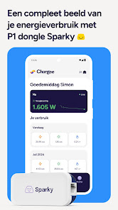 Om de Chargee app te gebruiken heb de Sparky P1 meter nodig onze realtime energiemeter Sparky koppel je makkelijk zelf aan je slimme meter Klik verbind met wifi en klaar