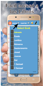 Usted puede hacer clic en la pantalla y la en la parte inferior aparecer el nombre de libro y el captulo al presionarla aparecer el listado de los libros y en la otra los captulos que posee el libro seleccionado