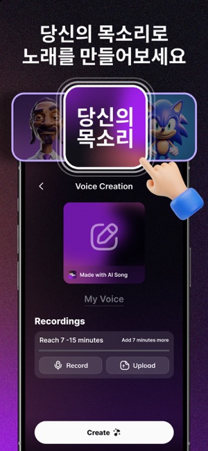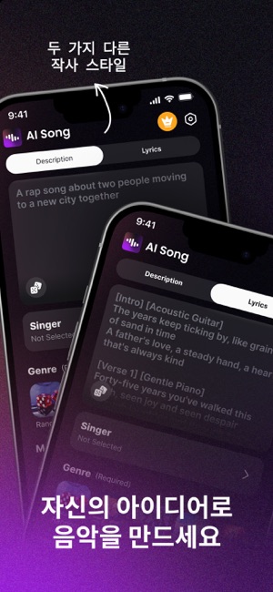 음악의 미래를 탐험하세요. 우리는 누구나 음악 창작자가 될 수 있도록 돕는 당신의 창의적 파트너입니다. 처음 시작하는 분이든, 숙련된 음악가이든 상관없이, AI 노래 및 음악은 당신의 음악적 아이디어를 쉽게 실현할 수 있게 도와줍니다.신진 아티스트, 작곡가, 혹은 단순히 음악을 만드는 것을 좋아하는 사람이라면 누구나 AI 노래 및 음악을 통해 손쉽게 자신의 음악적 아이디어를 실현할 수 있습니다. 단 몇 번의 클릭으로 당신의 생각, 가사, 혹은 단순한 설명조차 독특한 노래로 변환할 수 있습니다.과정은 간단하지만 강력합니다. 다양한 장르 중에서 선호하는 음악 스타일을 선택하세요. 팝, 록, 재즈 등 어떤 장르를 선호하든 AI 노래 및 음악이 준비되어 있습니다. 스타일을 선택한 후, 당신의 가사를 제공하거나 원하는 노래의 테마 또는 분위기를 설명할 수 있습니다. 그런 다음 우리의 고급 AI가 당신의 입력에 맞는 멜로디와 편곡을 완벽하게 만들어냅니다.
