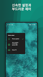 미디어 출력 선택기 연결된 블루투스 장치에서 음악을 재생할 위치를 선택합니다 라이브 캡션 버튼을 사용할 수 있습니다