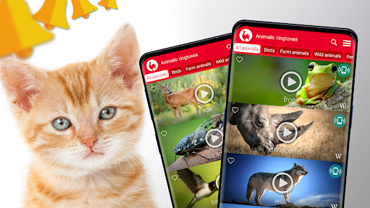 190 개 이상의 HD 동물 소리에서 무료 벨소리 알림 또는 알람 소리를 선택하고 사자가 으르렁 거림 수탉의 울음 소리 암소 암소 고양이 소리 및 기타 동물 소리를 휴대 전화로 무료 벨소리로 가져 와서 친구에게 충격을줍니다