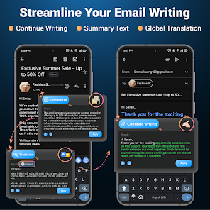 Supported by the ChatGPT API AI Keyboard and the AI writing assistant help you create professional emails messages and social media posts in any writing apps you choose