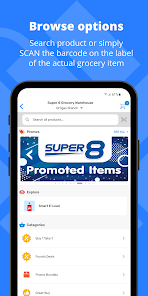 Browsing options to easily find what youre looking for Browse per category or see all products search product or simply SCAN the barcode on the label of the actual grocery item no need to scroll up or down