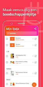 Stel jouw boodschappenlijst samen Stel eenvoudig jouw boodschappenlijstje voor deze week samen met aanbiedingen van winkels zoals Jumbo Hema en Kruidvat Voeg de items toe aan je lijstje terwijl je de aanbiedingen bekijkt Vink in de winkel je boodschappen af zodra je ze in je mandje legt zodat je niets vergeet Bovendien kun je prijzen vergelijken van verschillende winkels zoals Aldi en Lidl zodat je altijd de beste deal krijgt